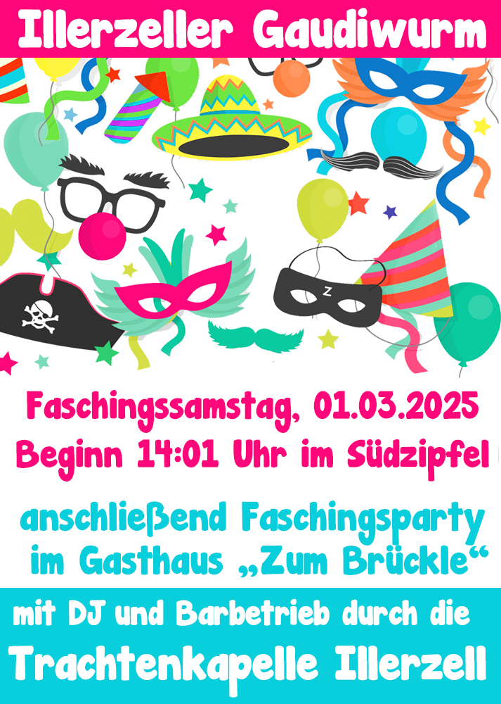 Auch dieses Jahr organisiert die IG Fasching den Zellamer Gaudiwurm, bei dem die Trachtenkapelle Illerzell die Narren musikalisch durch das Dorf begleitet.