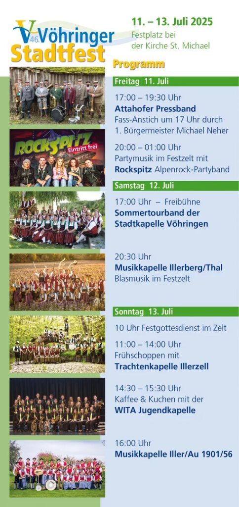 Am 13. Juli dürfen wir außerdem den Zeltgottesdienst sowie ab 11 Uhr den Frühschoppen musikalisch umrahmen. Im Anschluss darf dann ab 14:30 Uhr unsere Jugendkapelle WITA ihr Können zeigen.