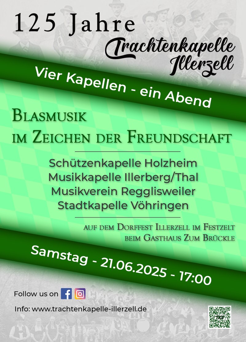 Blasmusik im Zeichen der Freundschaft mit der Musikkapelle Illerberg/Thal, Musikverein Regglisweiler, Schützenkapelle Holzheim und der Stadtkapelle Vöhringen.